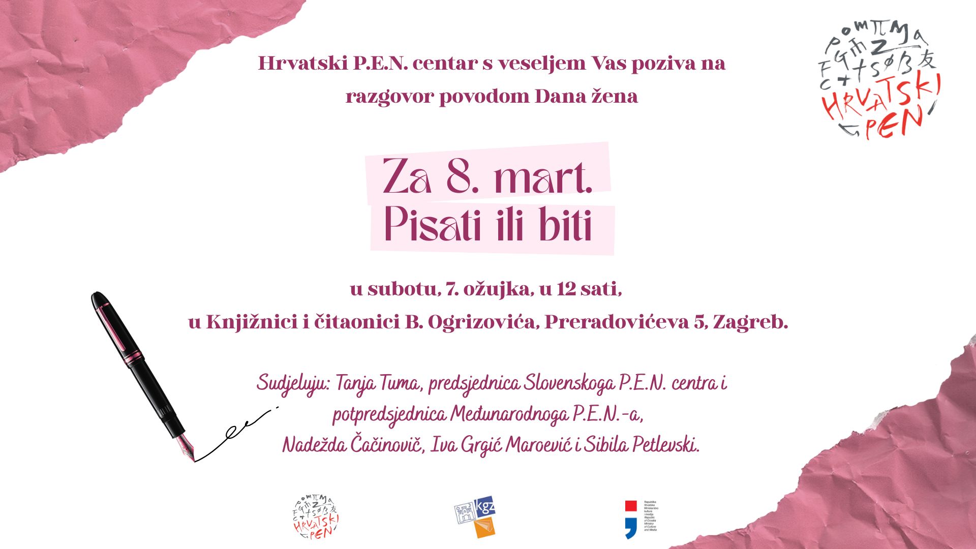 Hrvatski P.E.N. centar s veseljem Vas poziva na razgovor povodom Dana žena